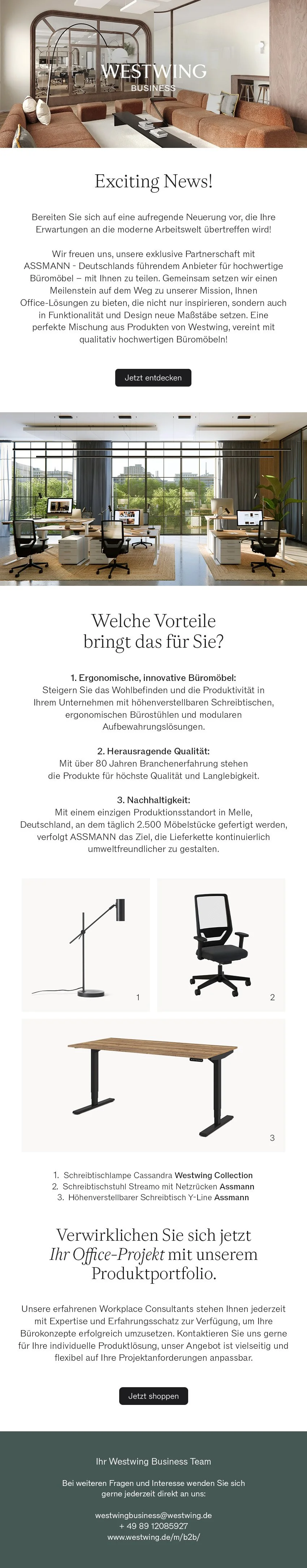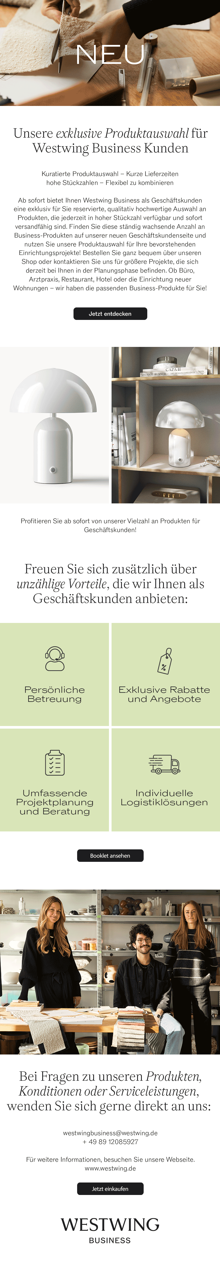Throughout my role in B2B marketing, I was responsible for a wide range of marketing activities. My ongoing tasks included creating visuals and copy for performance marketing campaigns (Meta, SEA, LinkedIn), setting up newsletters for both internal and external communication and optimizing our landingpage. Later, this included the development of new subpages from scratch for different target groups. I also conceptualized and created customer sales materials such as booklets for new clients, target-group-specific brochures, and project case studies. In addition, I supported the creation of marketing materials for events and trade fairs.
