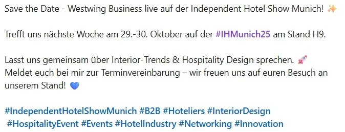 I supported with the pre-com of our attendance on the Independent Hotel Show in Munich.